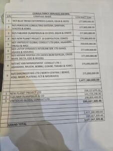 Another company, Vintsolve Global Consult, with no record of registration and ownership, also got N558.8million.