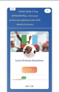 This is also not a nail or verdict on the political aspirations of the involved aspirants. It’s just a mere opinion poll to sample the opinions of the good people of Ondo State.
