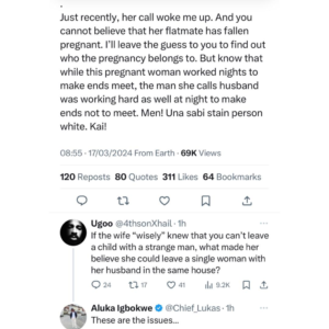 However, she discovered that her husband who she was toiling hard for to see through school and help with the home bills went astray and got their tenant pregnant.
