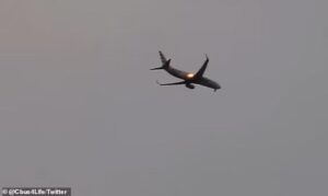 Witnesses on the scene said it was struck by a flock of geese as it took off, causing flames to shoot from the engine and create ‘wonky, pulsing noises.’