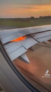 According to Mail Online, passengers Marni Kallestad and Ryan Brink recorded the incident as flames shot from the engine.