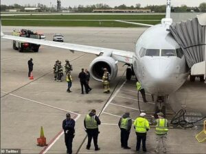 An American airline Boeing 737’s engine burst into flames midair before the pilot safely executed an emergency landing at Ohio airport, as the aircraft was struck by a flock of geese.