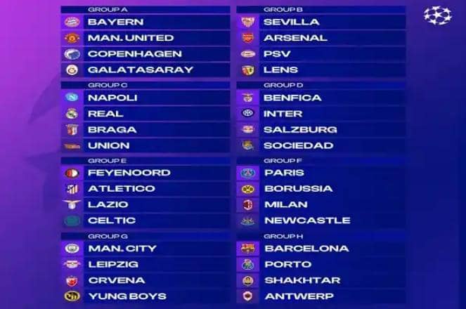 Appearing in Europe’s elite club competition for the first time in 20 years, Saudi-owned Newcastle will face AC Milan and Borussia Dortmund as well as Qatar-backed PSG in a tough Group F, while Bayern and United were joined by FC Copenhagen and Galatasaray in Group A.