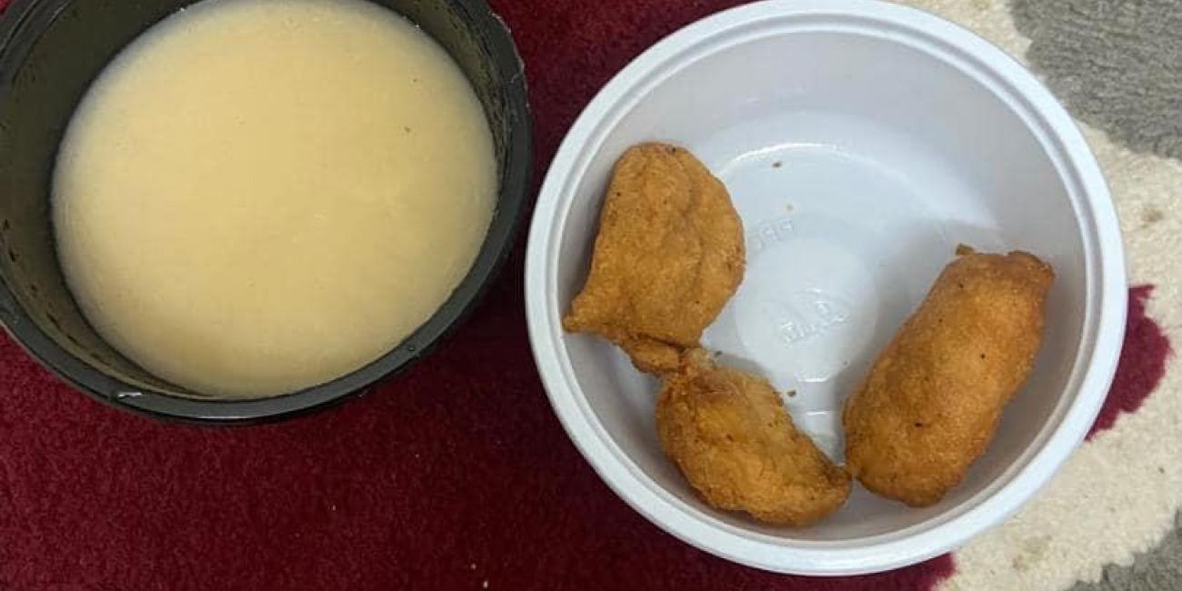 A Facebook user, Babagana Digima, shared a photo depicting a small portion of pap and three bean cakes, which were reportedly served to the pilgrims on Tuesday morning.
